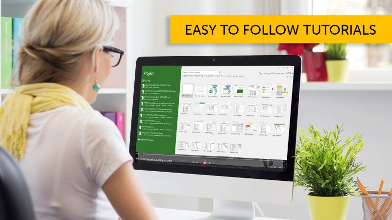 Stunning design and vibrant graphics bring the Microsoft Project interface to life. Perfect for visual learners!