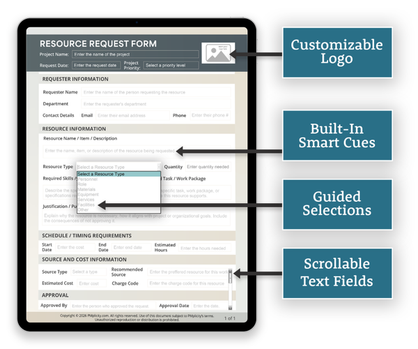 - Reduces rework and delays through consistent, well‑structured resource request documentation